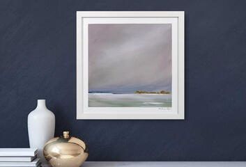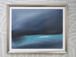 Framed Ocean Painting on Canvas Board, Original Landscape, Co...