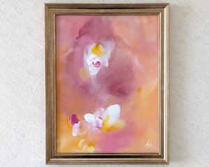 Abstract Orchid Painting on Canvas Board, Framed Original Sma...